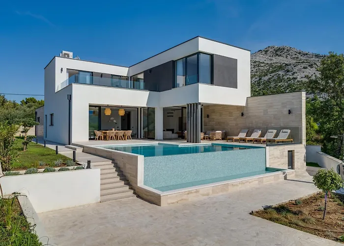 Umístěna ve městě Starigrad Paklenica, vila New Luxury Villa I Infinity Pool je 4-ložnicové ubytování, které obsahuje terasu s výhledem na hory. Součástí vily je i soukromý plavecký bazén, který máte k dispozici.